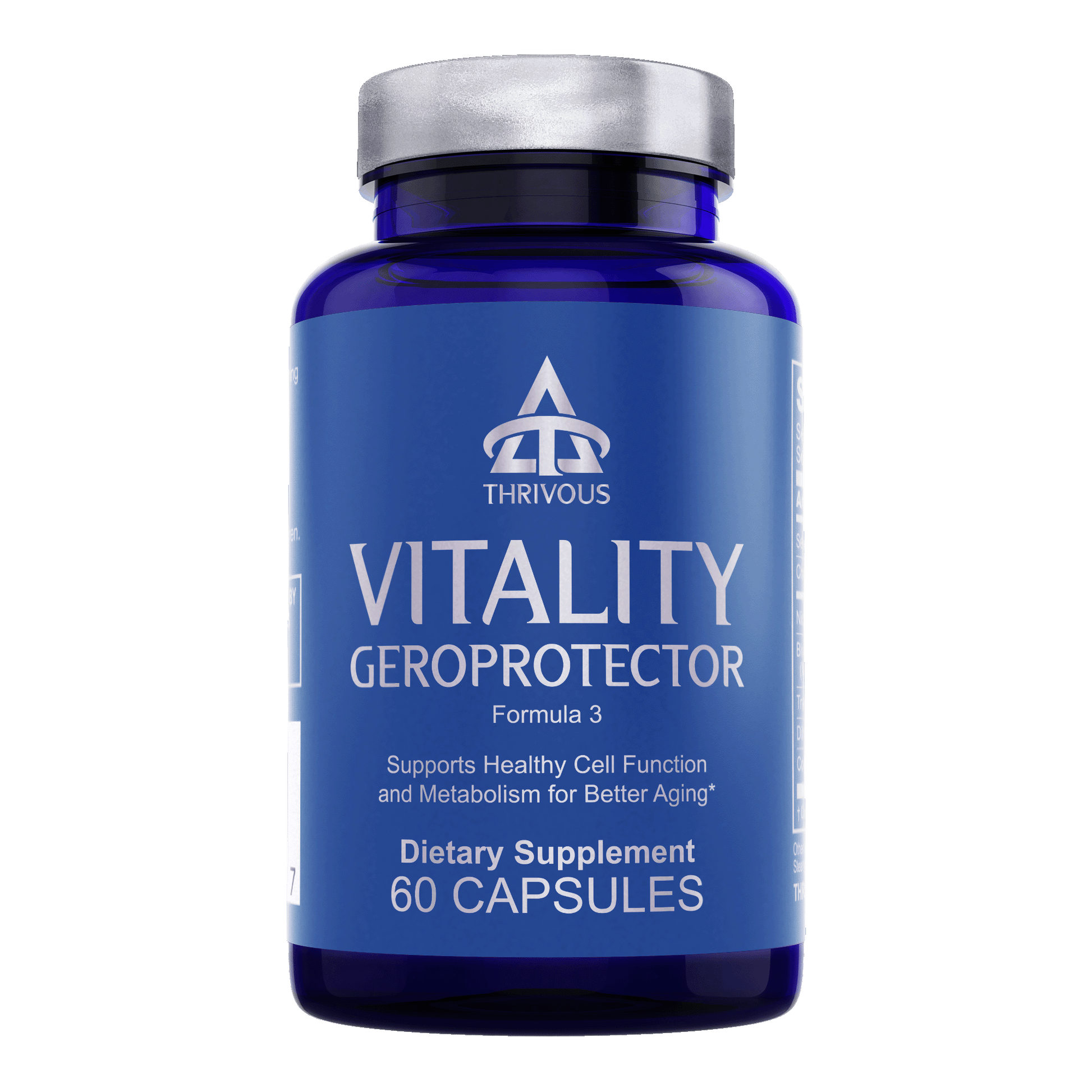 Vitality Geroprotector is an advanced supplement to enhance metabolic, cellular, and genetic function for better aging. Each is a month supply (60 capsules) of the best natural geroprotectors, with clinical doses of Berberine, Nicotinamide Riboside, Mirtoselect® Blueberry Anthocyanin, Resveratrol, and Coenzyme Q10.